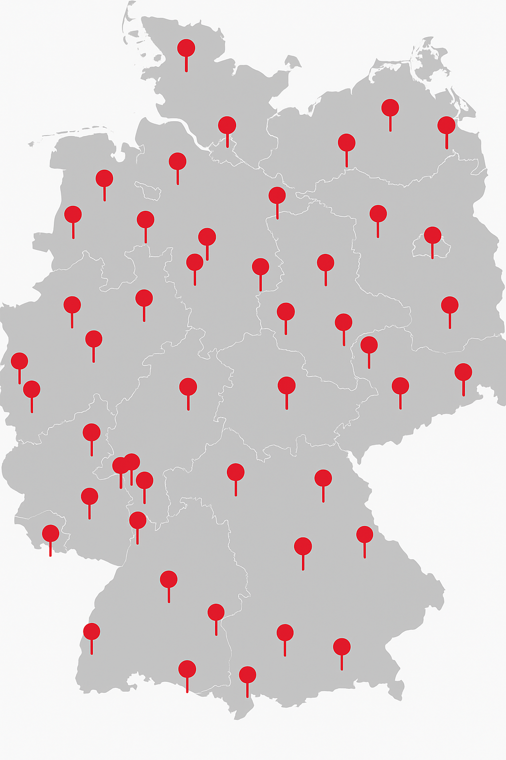 Wir bieten unsere Entrümpelungs- und Reinigungsdienstleistungen auch deutschlandweit an. Egal ob in kleinen Städten oder großen Ballungszentren – wir entrümpeln, entsorgen und reinigen zuverlässig und professionell. Unser Team sorgt dafür, dass Ihre Räume schnell nutzbar sind, Unbrauchbares fachgerecht entsorgt wird und alles umweltbewusst recycelt wird.